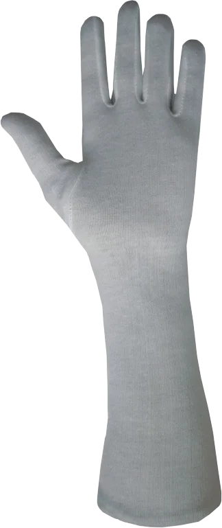 Description: Interlock White Palm with Grey Knit Wrist Gloves