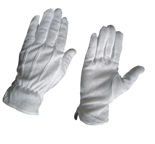 Description: Interlock White Dotted Gloves 3Ribs On Back