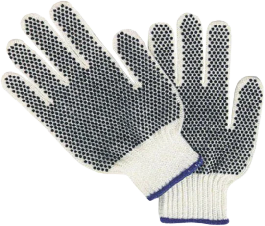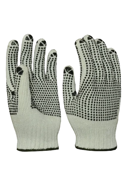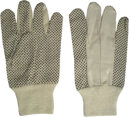 Description: Cotton Grey Drill Gloves with PVC Dots & Knit Wrist